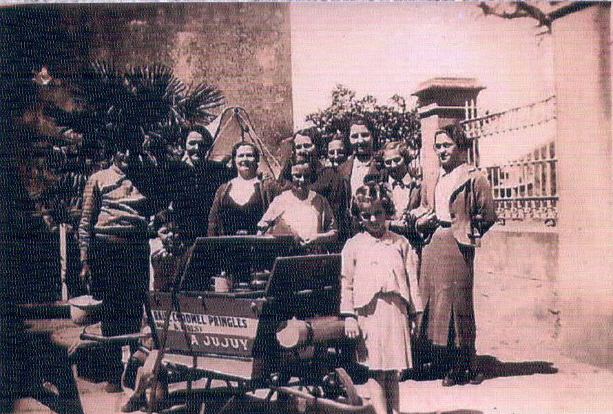 FOTO Nº 2 EN EL JARDIN DEL HOTEL ARGENTINO SE PUEDE VER EN LA FILA DE ATRÁS DE DERECHA A IZQUIERDA: Mangelita Valencia de Martinetti; Amanda Ardines de Petrabissi; Aurora de Esparza; Rosalia Rossetti de Larumbe; la siguiente no está identificada , sigue Anita de Rodriguez; Celina D. de Somoza; El Vasco de la Carretilla; de pie frente a la carretilla Marta Larumbe de Arrieta; Gladys Larumbe de Volpachio y por último entre la Sra. Celina D. de Somoza y el Vasco se encuentra Cacho Somoza.-