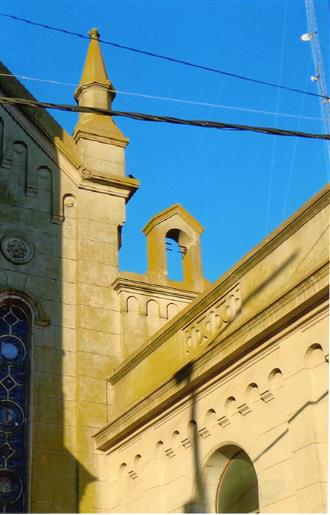 En dos oportunidades se coloca la piedra fundamental para construir nuestro templo, la primera vez : 17 de Enero de 1897 y la segunda: el 2 de Febrero de 1911, comenzando el 26 de Junio, se paralizó al poco tiempo por falta de fondos y en el año 1916, después de este pequeño intervalo, se reinicia y se inauguró el 25 de Diciembre de 1922.- Mas adelante se construye la torre y un sobre piso al que se llegaba por una escalera interna, desde donde se podía subir al campanario.- Desde este lugar cantaba el coro Parroquial.-