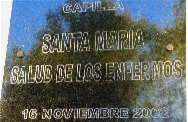El 13 de noviembre de 2002 se bendijo un cuadro con la Imagen de la Virgen Santa Maria Salud de los Enfermos y una placa recordatorio en el frente de la capilla.-