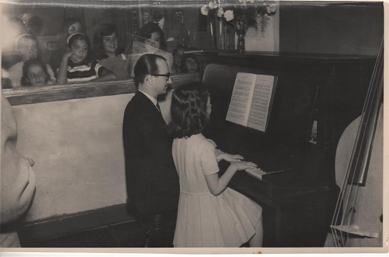 FOTO: Jóvenes músicos que concurrían para amenizar en ROAL PUBLICIDAD , entre los que se cuenta a Hector Elorza- Mario Sarachi- Ruben Buey-, Miguel Pereyra, N. Romero, Josè Luis Godoy, Schwindt, Hermanas Torres entre otros y Carlitos Abadie, Maria del Pilar Silva, Azucena y Bruno Febo Albert.-