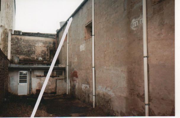(La escalera estaba al fondo del terreno, donde hoy se ve una construcción que antes no existía y se puso una flecha dirigida a la canaleta)